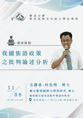 【演講活動】114.11.8 (六) 10:00~12:00 「我國族語政策之批判論述分析」演講者:何光明 地點:南投埔里辦公室