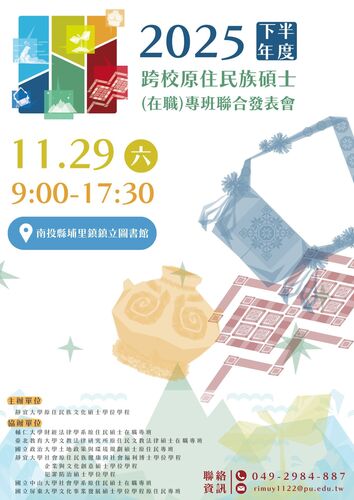 【活動預告】跨校原住民族碩士(在職)專班聯合發表會開始徵件囉!114.11.29(六) 地點:南投縣埔里圖書館