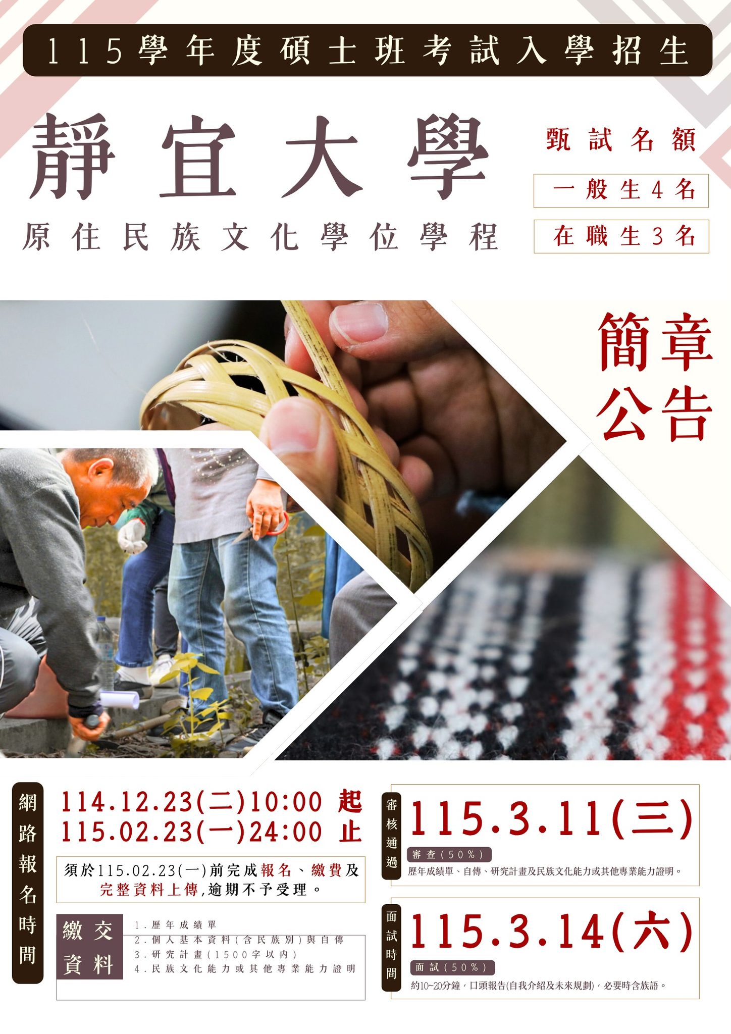 【入學考試】🔥🔥🔥115學年度碩博士班暨碩士在職專班考試入學簡章-網路報名期間:114年12月23日 (一) 上午10時 ~ 115年2月23日 (一)
